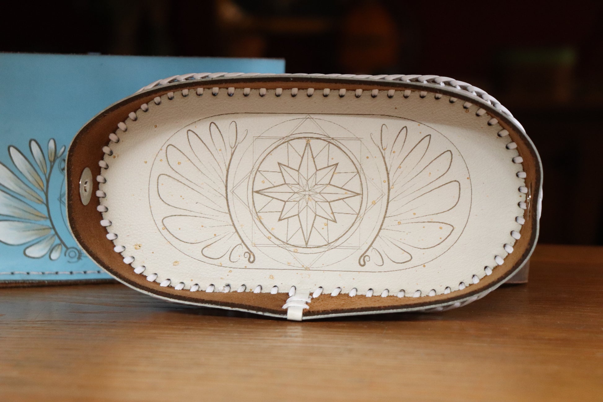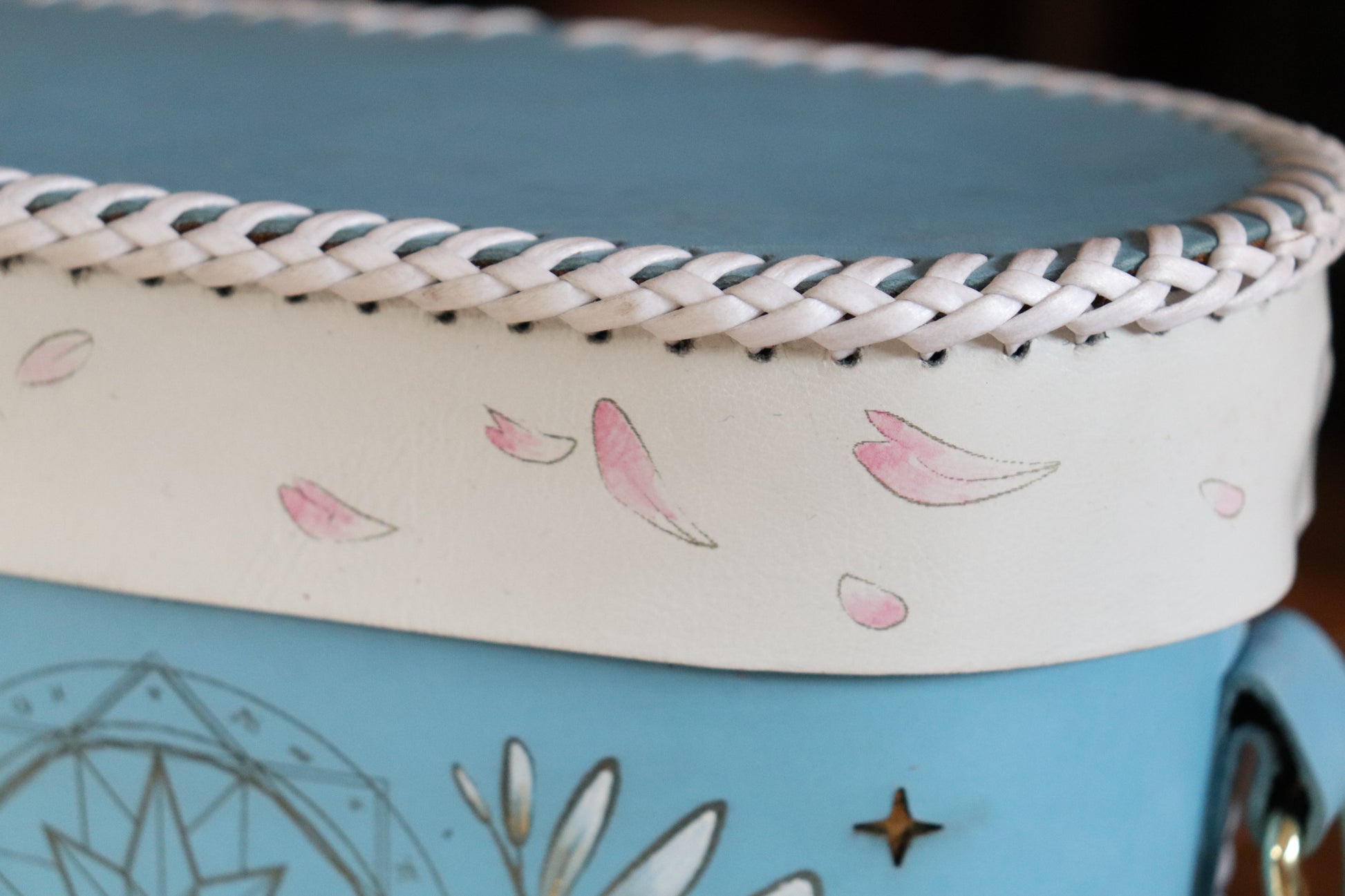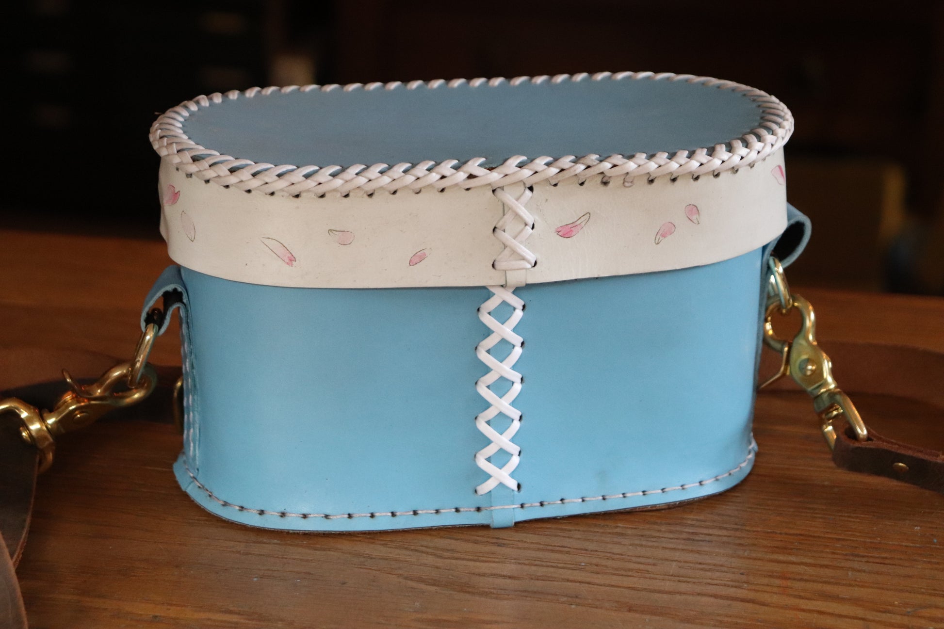 This version has hand-painted details on both the bag itself and the lid.