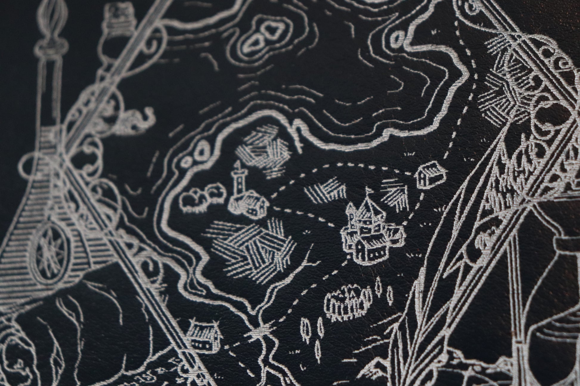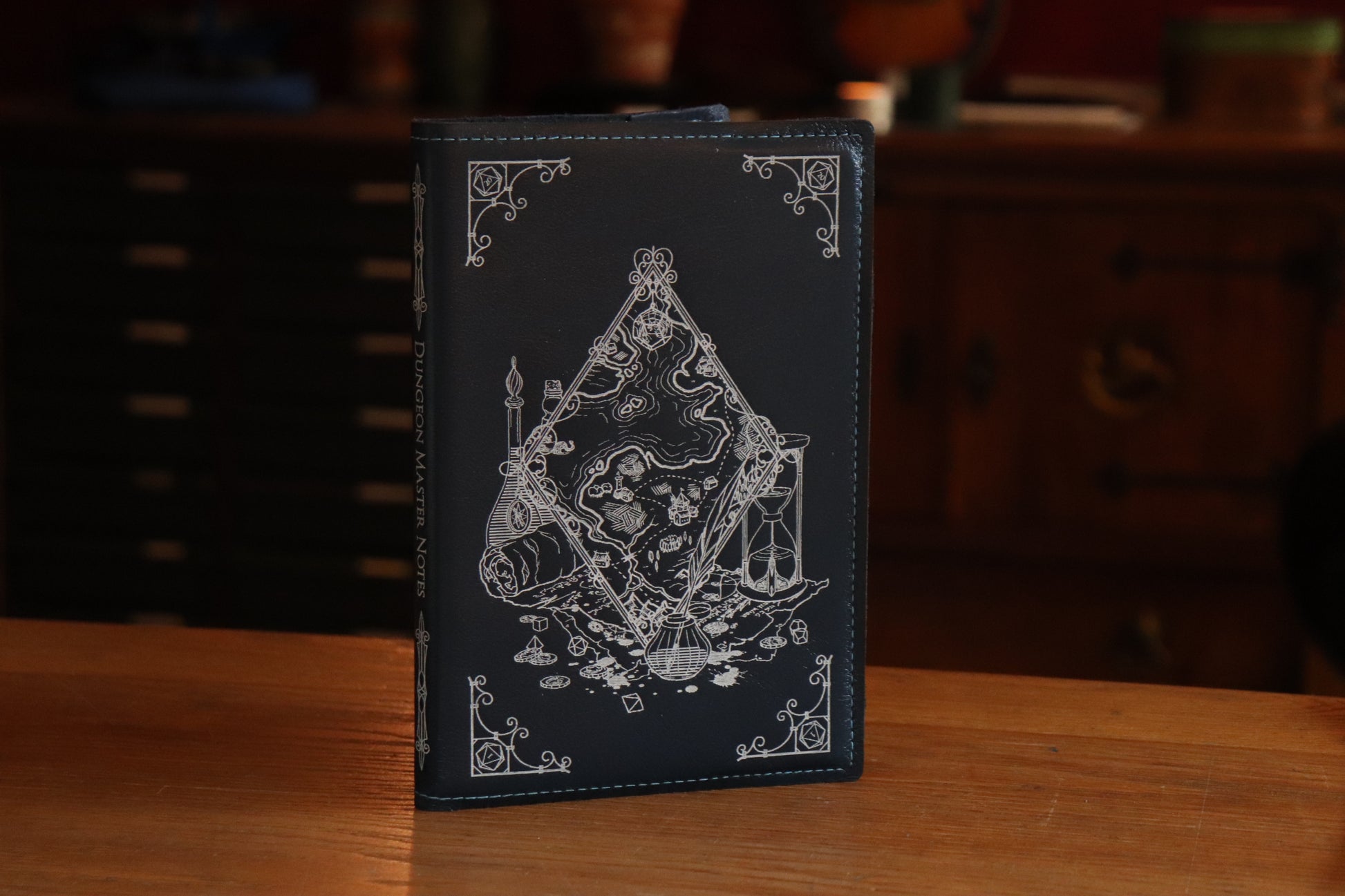 An A5 lined notebook with dark blue leather sleeve, engraved with our Architect design and inlaid with white coloured wax. Notebook can be swapped out for a new one, though we recommend bringing the sleeve with you to the store to double-check the fit.
