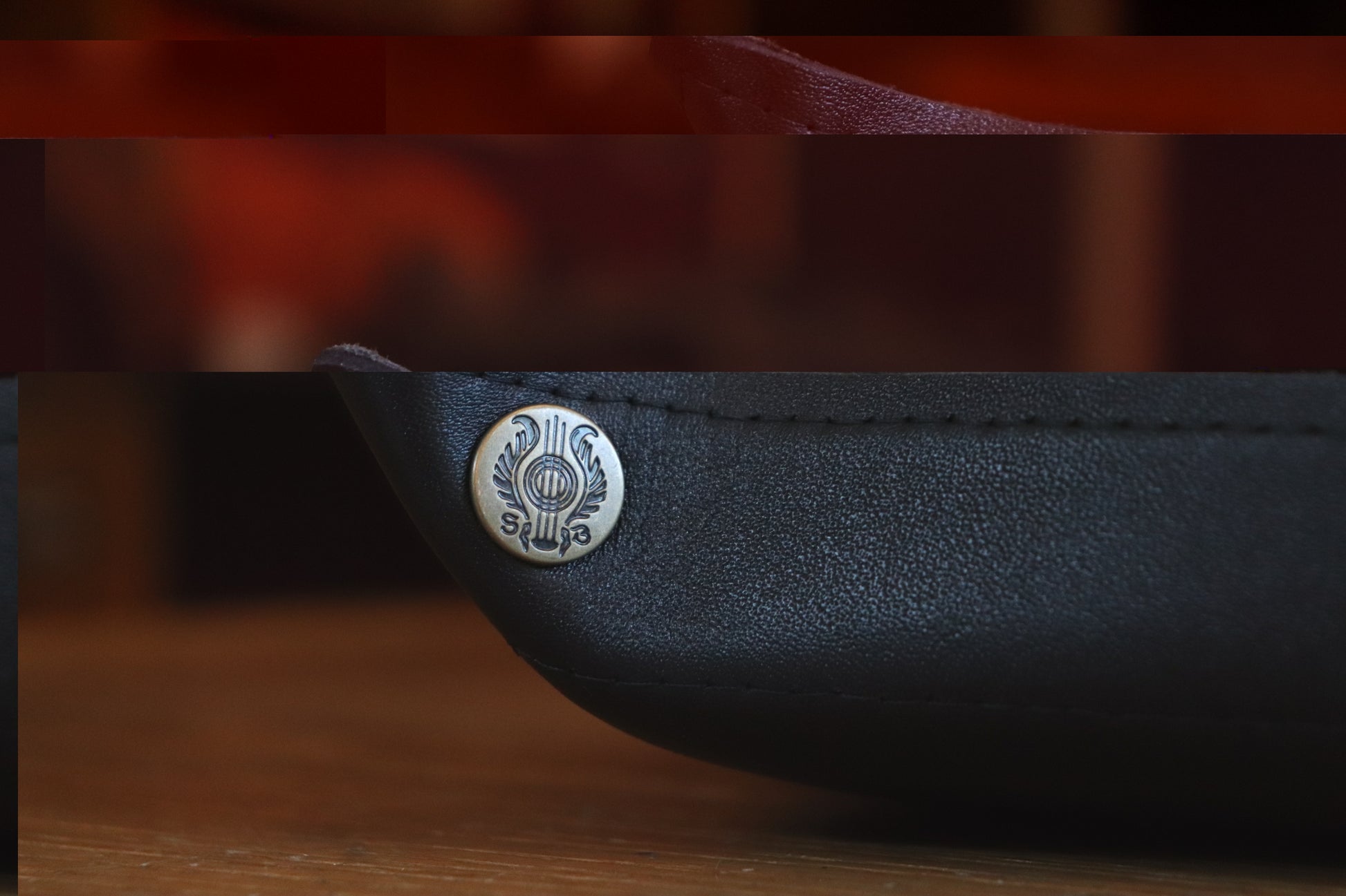 Our famous hand-painted Galaxy leather with gold inlay. Available in black or grey leather backing.