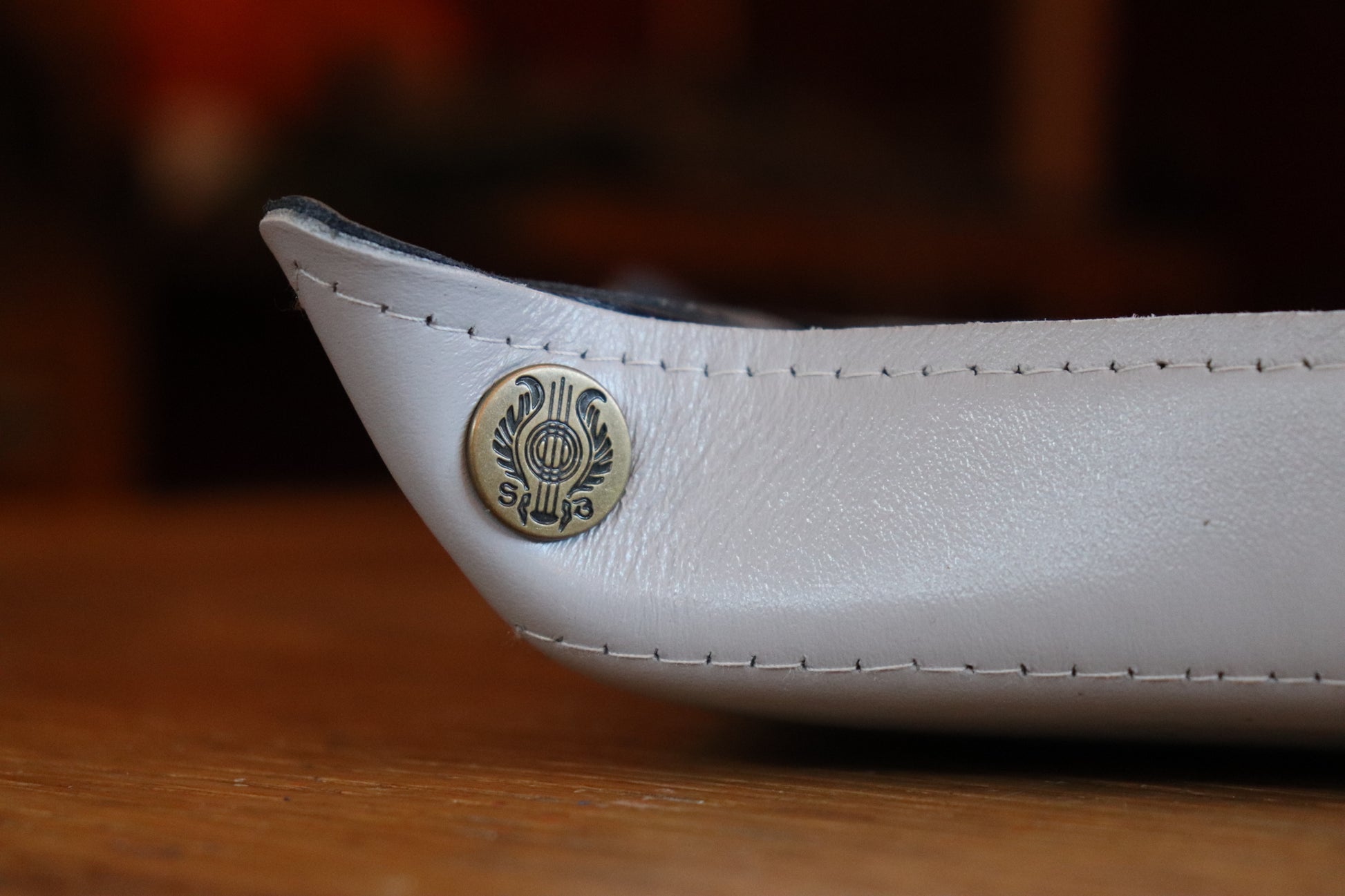 Our famous hand-painted Galaxy leather with white inlay. Available in black or grey leather backing.
