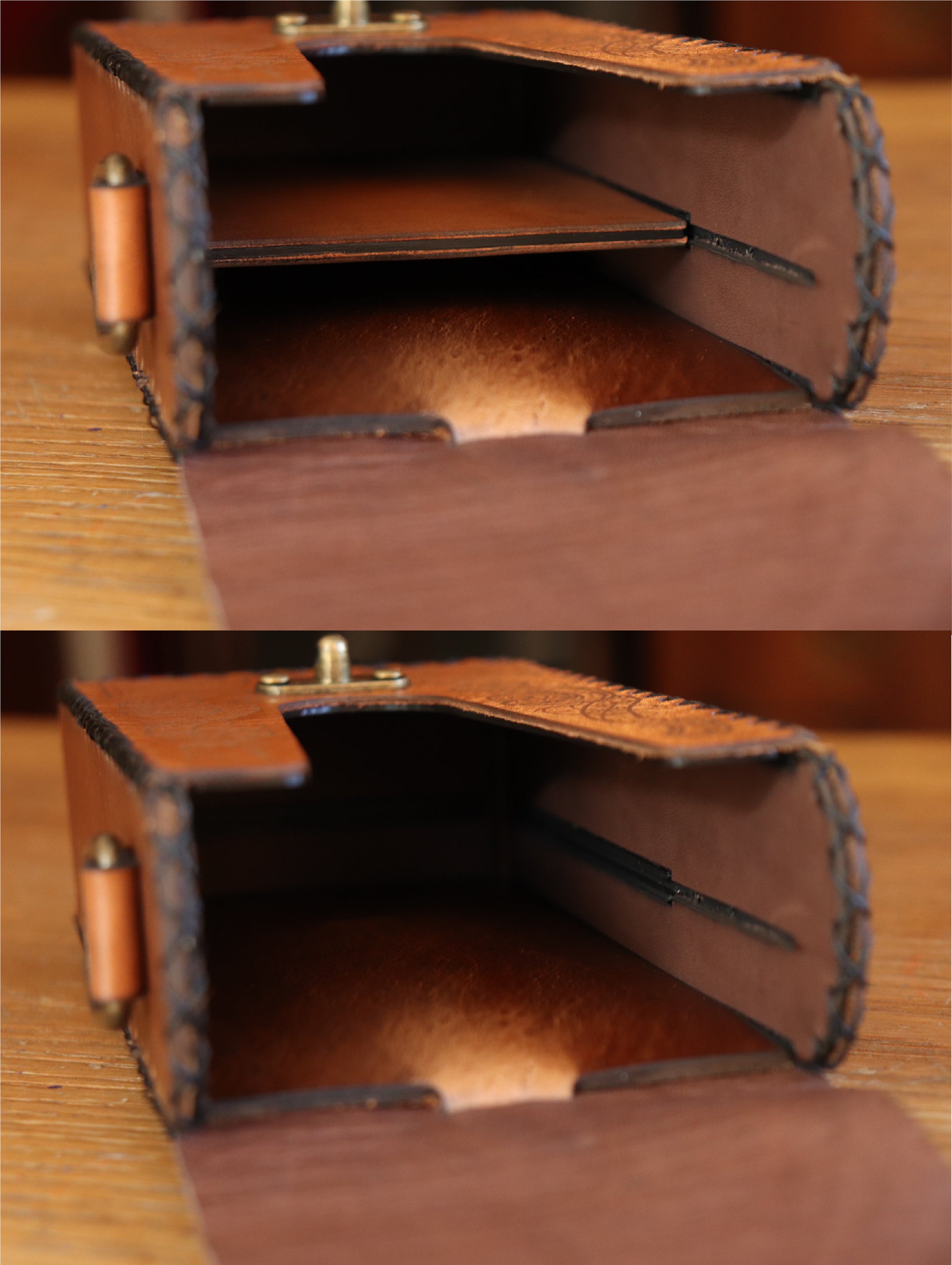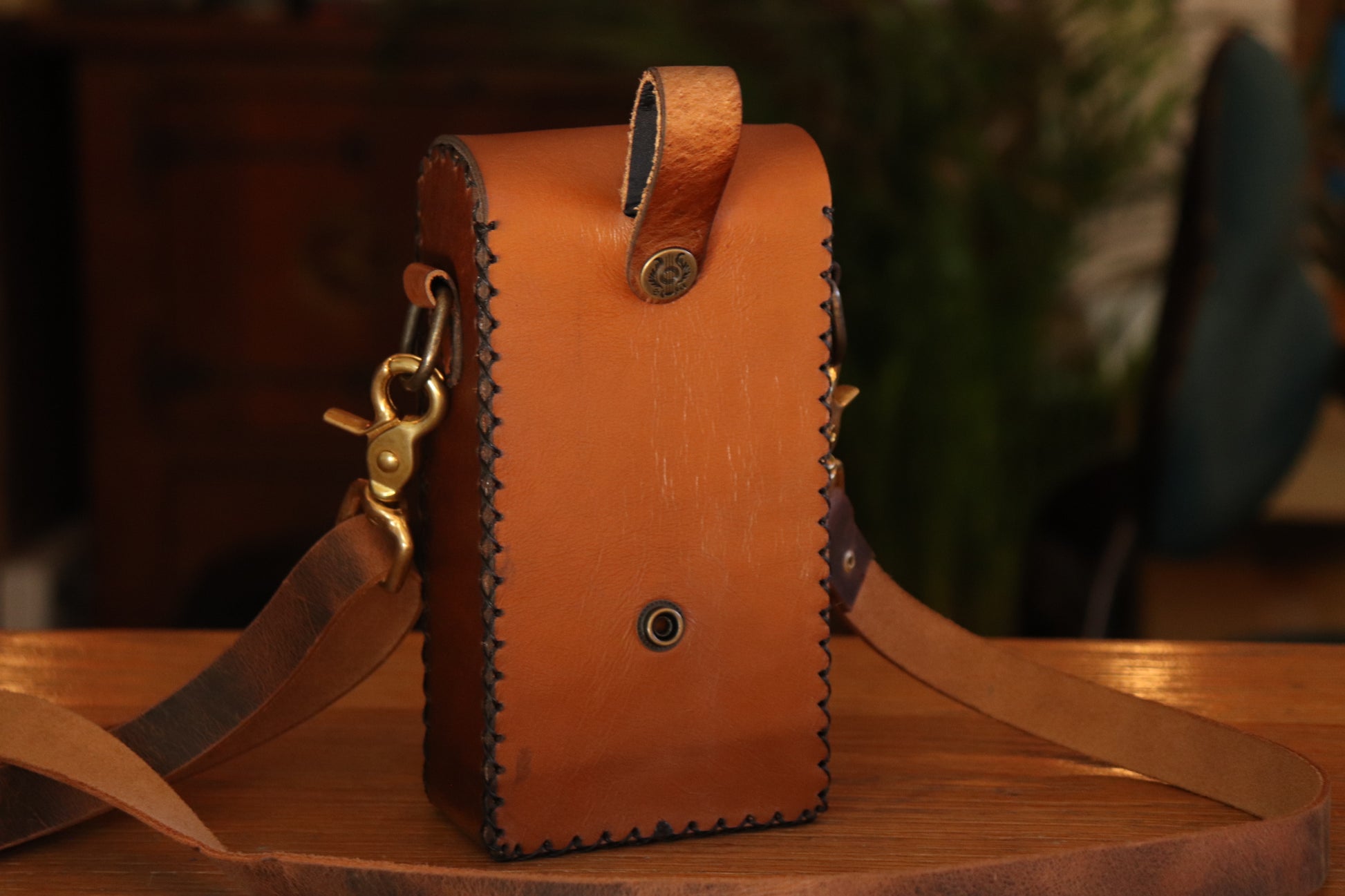 The Festival pouch is designed to hold a phone and a coin purse or card holder in a fantasy style that matches the vibes of ren faires and nerdy conventions. With a leather clad removable divider in the middle to protect your precious items from scratching.
